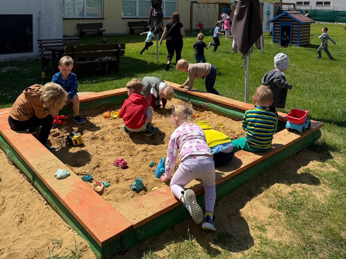 Posezení, prolézací hrad, houpačky, domečky, pískoviště, hry k zapůjčení