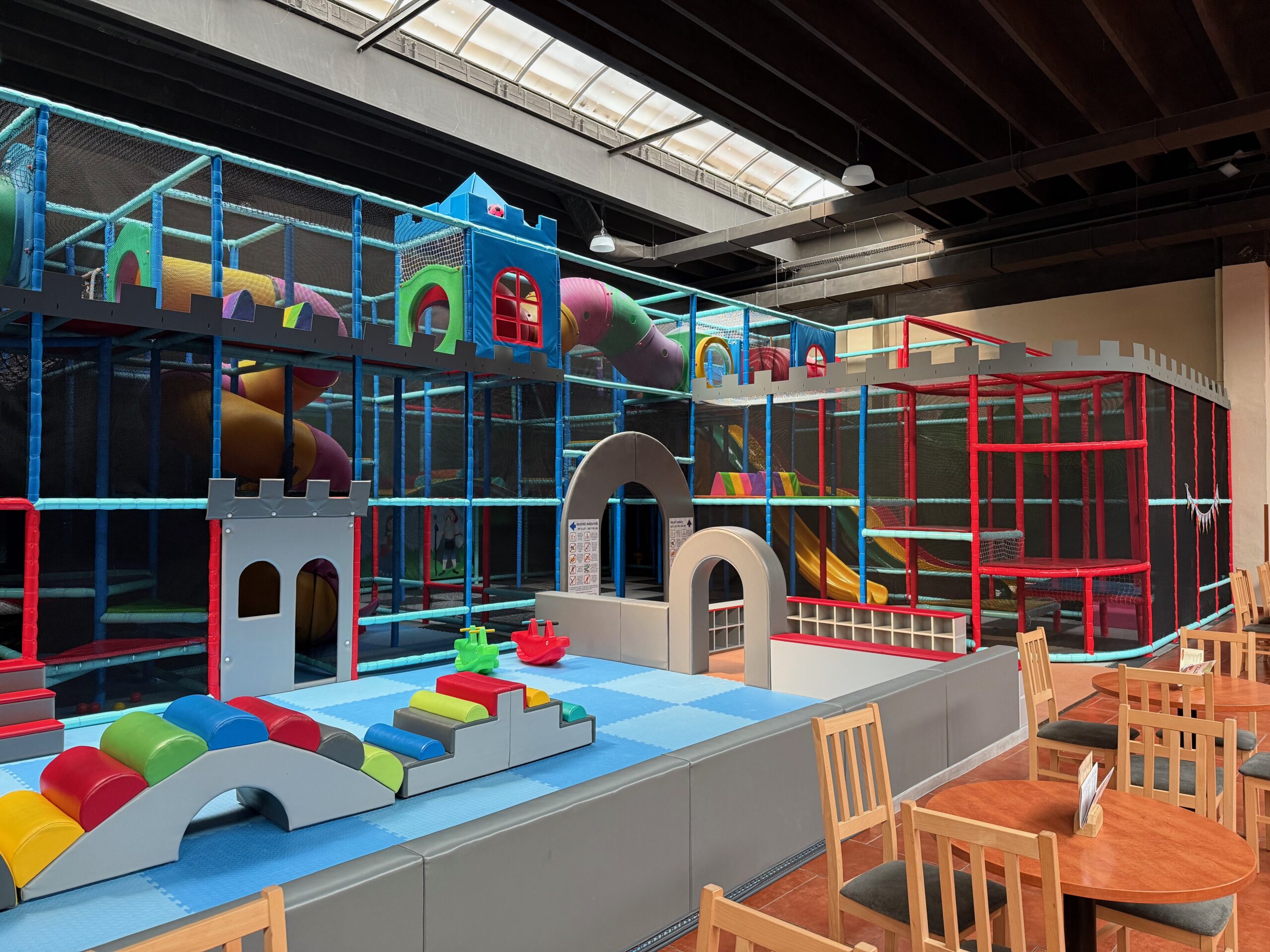 pro malé návštěvníky je zde oddělená dětská zóna „modré nádvoří“. Větší děti se vyřádí ve třípatrovém prolézacím hradě se skluzavkami a balónky nebo na venkovním hřišti s pískovištěm.